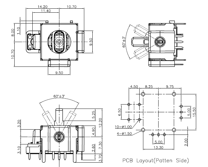 | CJP161219D01 | 5K,10k,20k,50k | "B"线型 | 300mV以下 | 120±50gf | 2,000,000cycles | . |