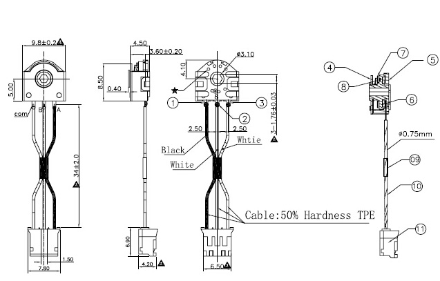 | 2.请使用1.6mm板厚的印刷电路板 |
